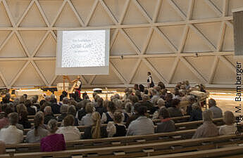 If you walk towards this catholic church in Holzkirchen, you are amazed. Two blunt oblique cones remind one of the local Alpine panorama. The traditional material wood with the wooden shingles refers the building to the region and conveys a feeling of security.