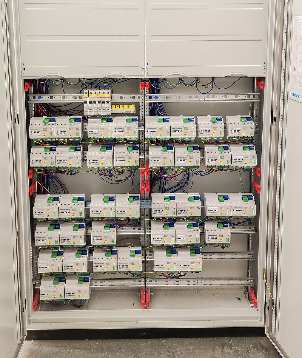 There are several touch control points on site for intelligent and user-friendly management of the entire system. This was achieved with the ISYGLT wall touch variants and the larger ISYnet Touch-PCs with our IPMS visualisation.