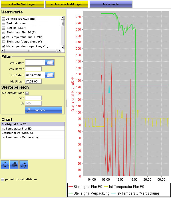 Neben der Steuerung unseres Systems ist es auch möglich, Störmeldungen und Messwerte aufzuzeichnen und diese zu protokollieren.