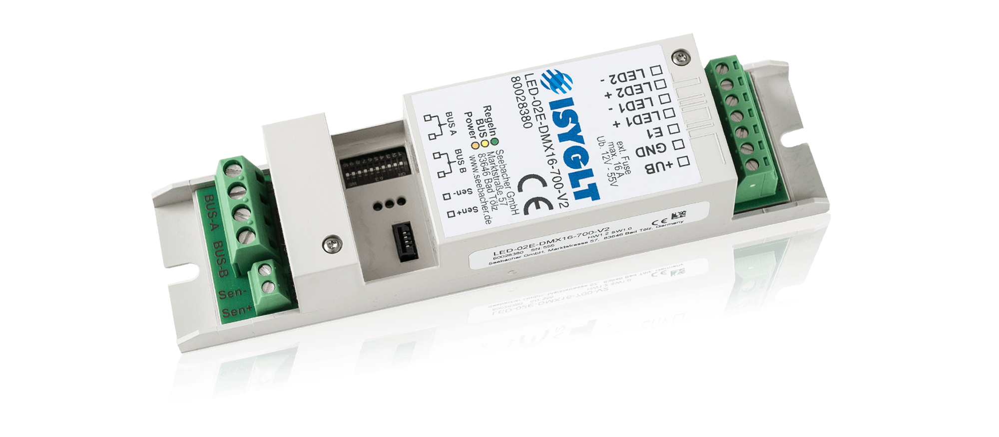 Der LED-Dimmer kann wahlweise am ISYGLT-BUS oder DMX512-BUS betrieben werden.