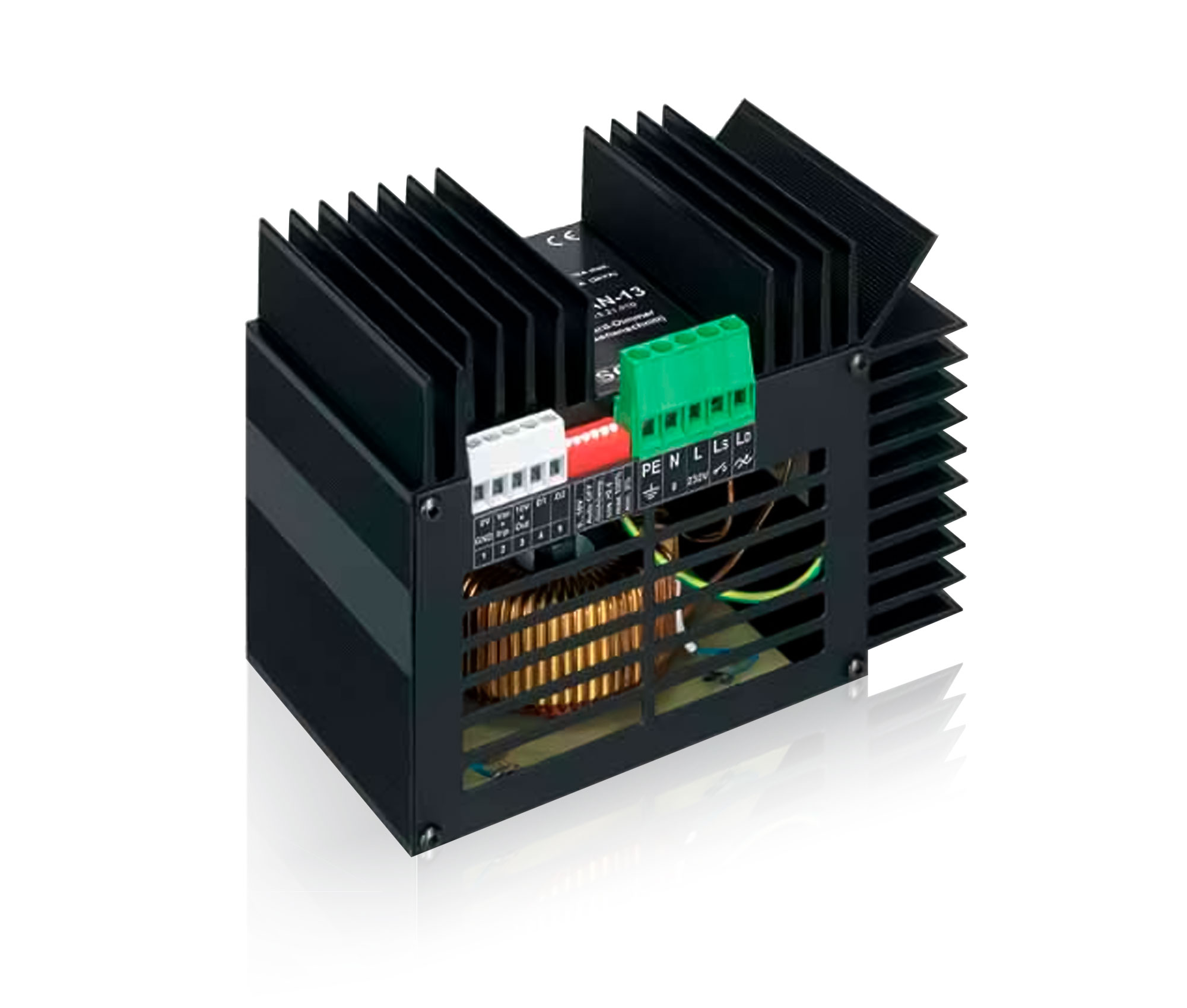 Eine automatische oder manuelle Ausschaltfunktion erweitert den Anwendungsbereich. Der SDK hat einen geregelten (dimmbaren) Ausgang 230V/13A mit einer integrierten Ein-/Ausschaltfunktion.